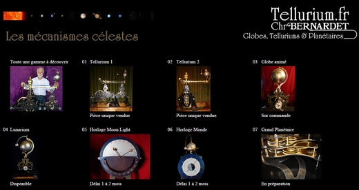 Christian Bernardet est un des rares créateurs actuels de sculptures mécaniques, planétaires et telluriums, tels qu'il en existait au 18e et 19e siècles.